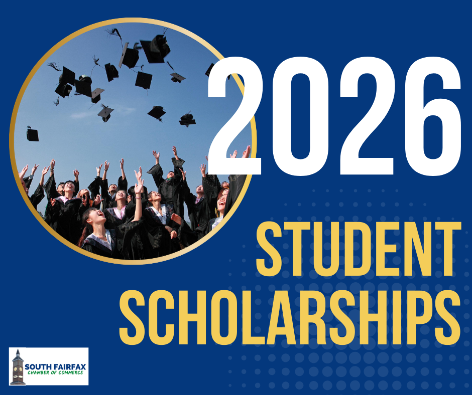 The South Fairfax Chamber of Commerce will award student scholarships for both rising college and trade school applicants from South County, Hayfield, W. Springfield, Lake Braddock, Robinson, and WT Woodson High School and Secondary Schools. We are seeking sponsors for each of these scholarships and will award scholarships based on the number of business sponsors we receive.