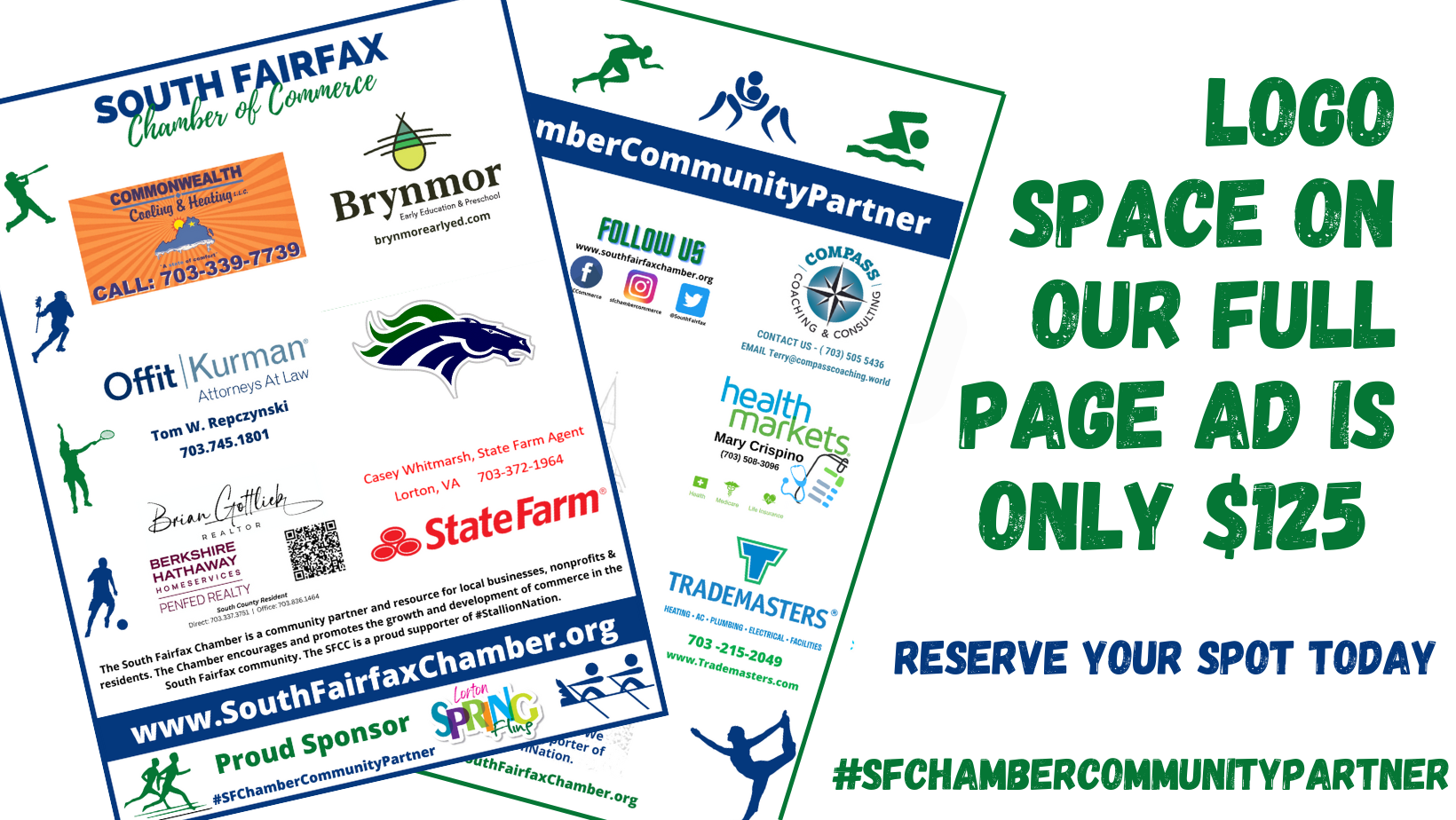The South Fairfax Chamber is once again teaming up with Chamber members to support our local student-athletes — and your business can be part of the winning team! Purchase logo space on our full-page Chamber ad in the official South County High School Sports Program, seen by thousands of fans throughout the season.